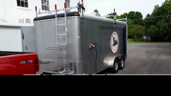 On Monday April 27 the Cleveland Bradley County ACS group invited the Chattanooga Amateur Radio club to bring up their Mobile Communications Platform, MCP-1, to Bradley County for a preview of what the ACS trailer could look like. Having the trailers side by side gave us some good ideas for how to equip the CBCACS trailer. We want to thank our neighbors for the Chattanooga Amateur Radio Club for making this taking the time and effort to make this happen. Here are some pictures of MCP-1:
